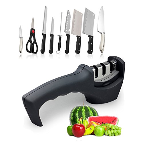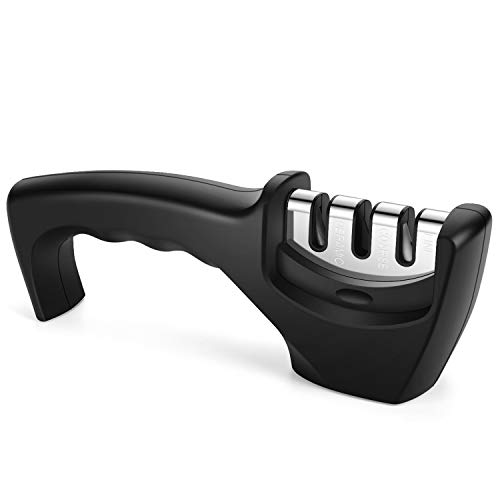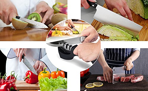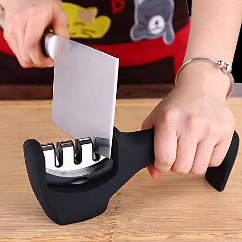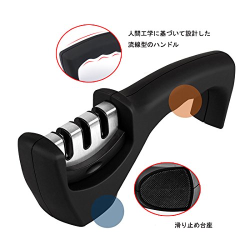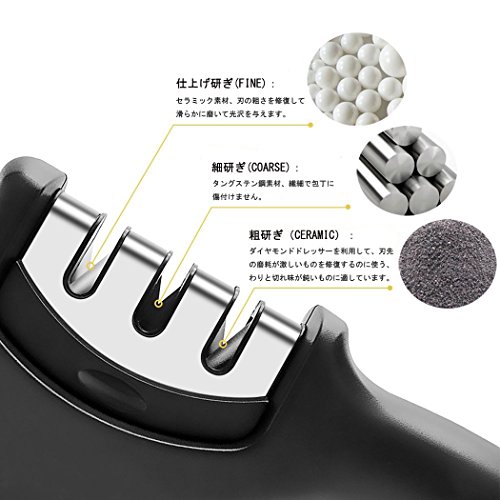 包丁研ぎ器 研ぎ石 セラミックロール ダイヤモンド砥石 三段階研ぎ 粗研ぎ 細研ぎ 仕上げ研磨 ホーム キッチンに適用 (ブラック)