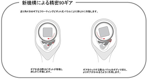 - 4度の振り角を可能にする90ギアはガタツキがなく、90ギアにもかかわらずしっかりとしたノッチ感。