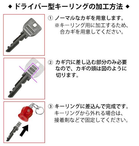車のキーを圧入してキーグリップにしたり、工夫次第で様々な使用用途が広がります。