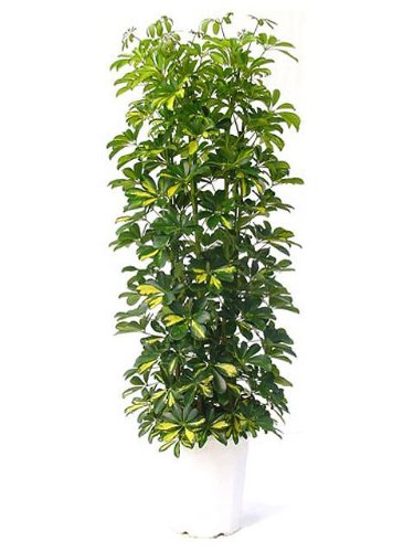 豊かな葉と癖の無い姿は様々な用途に適しています。古くから一般的にホンコン・カポックと呼ばれ馴染みの深い観葉植物の葉に班が入った種類です。豊かな葉と癖のない樹姿はオフィスやカジュアルな場所でも調和し、また、仕切り用の植物としても最適です。非常に寒さにも強く、また耐陰性にも強い植物です。長い葉柄の先に手を広げたような濃緑色の小葉がついて(掌状葉)が付き中低木の直立した木となります。鉢サイズ:10号サイズ高さ:約160cm