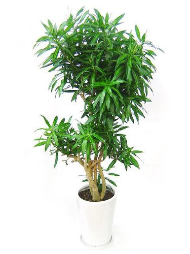 そのまま飾れる陶器鉢植え。育てやすく丈夫なグリーンの葉と美しい樹形のソングオブジャマイカ。グリーン葉の中央付近に黄色い縦斑が入った葉の模様と、枝分かれした樹形が人気のソングオブジャマイカを、ラウンド型のモダンな陶器鉢にアレンジしています。陶器鉢はホワイトおよびブラックからお選び頂けます。ソングオブジャマイカは、他の斑入りの植物よりかは日当たりが多少悪くても班が消え難い植物です。虫もあまり付きにくく、多少水やりを忘れた位では枯れない丈夫で育てやすい観葉植物です。鉢サイズ:φ27×37cm高さ:140cm