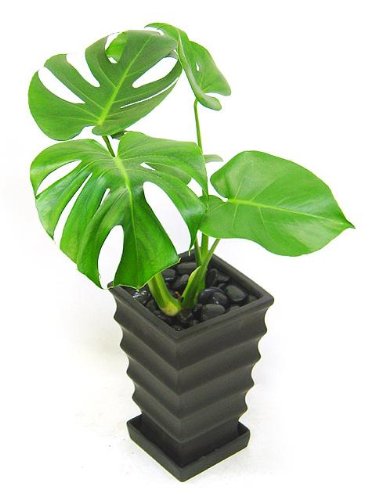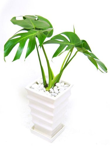 モダンなインテリアプランツのモンステラ。ウェーブスクエアタイプの鉢にアレンジ。モダンなインテリアとして人気のモンステラを波のある美しいスクエアタイプの陶器鉢にアレンジしました。陶器鉢の色は、ホワイトおよびブラックからお選びいただけます。大きなハート型の葉に不規則な切れ込みや穴が開く葉が特長のモンステラ。成長をするとより葉の切れ込みや穴が多くなります。また、茎より気根と呼ばれる根を多数生やしてきます。気根は切り取って頂いても構いませんが、鉢に誘引してあげればより個性的なプタンツになります。鉢サイズ:W17×D17×H27cm高さ:約60cm