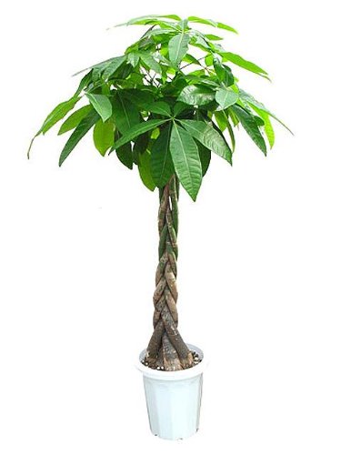 編みこまれた幹の先に8方に広がる葉がボリューム満点。プレンゼントなどにもピッタリです。編みこんだ幹の上部にヤツデのような、八方に広がる薄く涼しげな葉を沢山つける、人気の観葉植物です。葉は上の方に広がり、また横に大きくは広がりませんので、大きさの割にはスペースをあまりとりません。英名では、カイエンナッツと呼ばれおり種を炒って食用にされているそうです比較的育てやすい植物ですので、プレゼントや贈り物にもピッタリです。鉢サイズ:10号高さ:約180cm