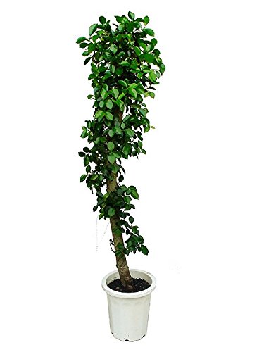 精霊の宿る木とされる、小振りな葉が可愛らしくも神秘的なゴムノキです。沖縄では精霊の宿る木とされているゴムノキの仲間の観葉植物です。太い幹から卵型の可愛らしい葉を出します。日本の南部では幸福をもたらす精霊が住む木と伝えられ、沖縄ではキムジナー、奄美ではケンムンと呼ばれる精霊が住んでいると言われています。長い期間育てたガジュマルは多くの気根を生やし、その姿は本当に精霊たちが住む木を思わせてくれます。性質も丈夫で育てやすく、別名で多幸の樹とも呼ばれ、贈り物やプレゼントにもピッタリです。鉢サイズ:10号高さ:約150cm