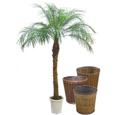 立ち上がった幹の先に葉が広がる、南国風の植物。やわらかい緑葉が下垂する優美な姿の八丈島特産のヤシ科の観葉植物です。一鉢お部屋に存在するだけでお部屋の雰囲気が南国リゾートの雰囲気になります。同じフェニックス属のカナリーヤシは暖地の街路樹などで植栽されており、このフェニックス・ロベリニーも意外と寒さには強い方なので関東以西の暖地なら野外にて越冬も可能です。 選定した樹形の美しいロベを選んでお届けさせて頂いています。鉢カバーはオプションにて選択後にカートに入れてください バスケット01細かく編みこまれた模様が美しいバスケットです。クセも無くさまざまなインテリアとの調和も良いバスケットです。