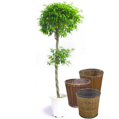 ツヤツヤの小さな葉が可愛らしい。スタンダードタイプのベンジャミン白灰色の木肌とツヤのある卵形の小さな葉が沢山付いた姿が上品で人気の観葉植物です。編みこんだ幹の上にツヤのある可愛らしい葉が沢山茂ってとっても素敵です。ベンジャミンは耐陰性が強く、丈夫で用途の広い観葉植物です。水が枯れると葉を落としやすくなるので注意してください。鉢サイズ:10号鉢高さ:約170cm鉢カバーはオプションにて選択後にカートに入れてください バスケット01細かく編みこまれた模様が美しいバスケットです。クセも無くさまざまなインテリアとの調和も良いバスケットです。