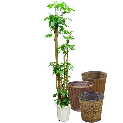 見事な枝ぶりの朴物ブラッサイア。インテリア性も高くお勧めです。見事な幹と枝ぶりのブラッサイアの朴物。ここまで立派なブラッサイアはなかなかありません。迫力ある幹よりツヤのある丸みを帯びた葉が沢山出る素敵な観葉植物。一鉢だけで目を惹くインテリアプランツとして最適な観葉植物です。別名でオクトパスツリーとも呼ばれており、これは成長した大きなの幹がタコの足のようなイメージになるからだそうです。また、葉を広げた姿からアンブレラツリーとも呼ばれています。 鉢カバーはオプションにて選択後にカートに入れてください バスケット01細かく編みこまれた模様が美しいバスケットです。クセも無くさまざまなインテリアとの調和も良いバスケットです。