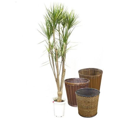 枝の密度が多いボリュームたっぷりのコンシンネ・ホワイホリーです。枝分かれしてスラッと伸びる枝の先に、白と緑の爽やかな縦斑が入る細長い葉を放射状に広げる姿が美しい観葉植物です。こちらのコンシンネ・ホワイホリーは一般に流通するホワイホリーに比べ剪定の数が多く、より多くの枝分かれをしているため枝が密になっています。白と薄緑の爽やかな葉が大変美しく、他のコンシンネに比べてより明るい印象を持ちます。お部屋に置くだけだ爽やかな印象になります。鉢カバーはオプションにて選択後にカートに入れてください バスケット01細かく編みこまれた模様が美しいバスケットです。クセも無くさまざまなインテリアとの調和も良いバスケットです。