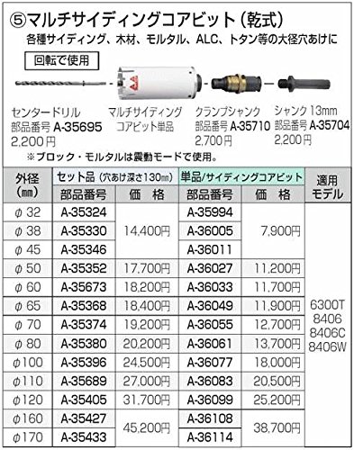 マキタ MAKITA アクセサリー A-35704 マルチサイディングコアビット(乾式)シャンク