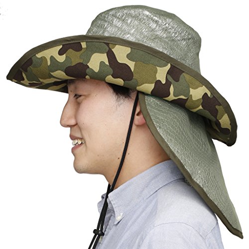 作業用帽子 涼かちゃん 迷彩テンガロンハット 883 グリーン (Mサイズ)