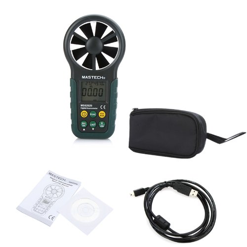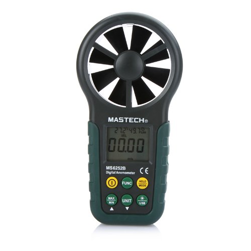 MASTECH MS6252B ポータブルデジタル風速計 ハンドヘルド式 ( LCD電子風速風量測量/温湿度表示/USB??データ アップロードバックライト)