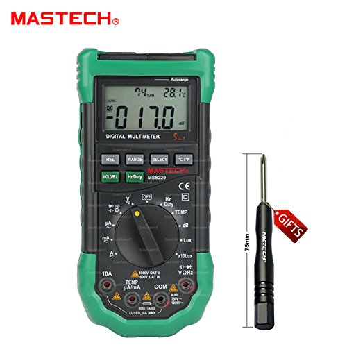 Mastech マルチメーター 5-in-1 温度&湿度 LED/警告音 電流 電圧 完全保護 バックライト LCD MS8229