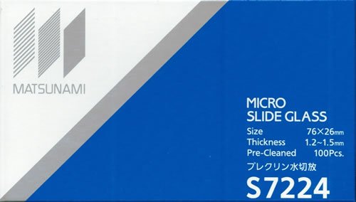 プレクリンとは「Pre-Cleaned」のことで「洗浄済み」を意味します。 安価なソーダライムガラス基板を使用しています。 ソーダライムガラス基板は建材用などに広く使用されており、一般的には水色(青色)をしています。 ガラスの縁を研磨していないので、手を切ったりしないように取り扱いに注意が必要です。 血液検査などの臨床検査分野で使用されています。