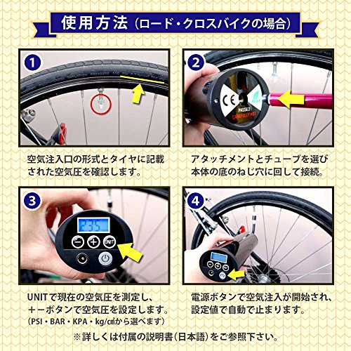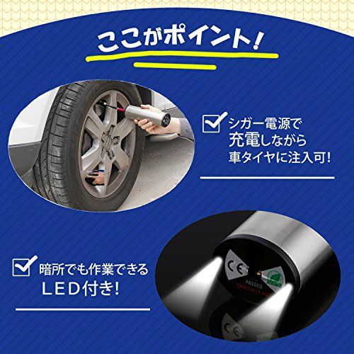 - 【女性でも使え、LEDライトも搭載】使い方は、ボタンを押すだけで使用できます。図で表示された日本語マニュアルが入り、簡単に使えます。LEDライトも搭載しているので夜間、暗い場所でも照らす事が出来るので便利です。★音量注意: コンプレッサーの音が少し大きいですが日中に使うべし、夜中は近所迷惑になります。