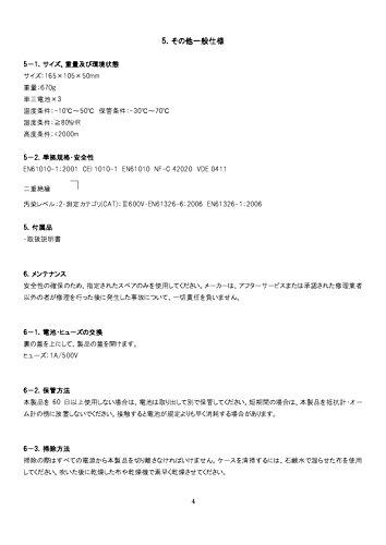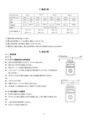 ●【日本仕様】取扱説明書日本語対応済,日本でも問題なくご使用頂けます。●【主な機能】●レンジ 電圧:60~120~240~480V 電流:2.5A/5A●確度:2.5%(DC),1%(AC)●周波数:0~500Hz●ヒューズ:1A【この商品は以下の規格に準拠しています。】EN 61010-1 -2001, CEI 1010-1, EN61010, NF-C 42020, VDE 0411【EMC規格】EMI:EN 61326-1:2006, EMS:EN 61326-1:2006