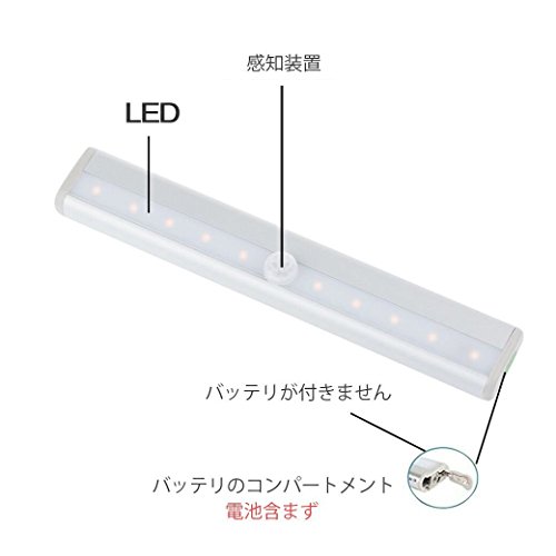本製品は乾電池式センサーライトです。さらに10個の高輝度LEDライト内臓、優れた照明を実現します。乾電池式ので電力がない停電時や災害時にも役立つであります。単4電池(1.5V) 4本をご使用ください