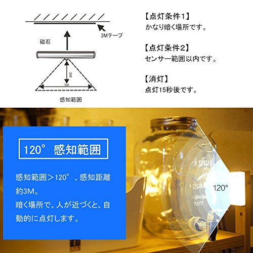 - 【使用範囲が広い】人が近づくとふわっと光るので廊下/階段/玄関/クローゼット/キッチン/物置/寝室/押し入れ/廊下/作業間/地下室/屋根/駐車/車庫/お子供とお年寄りの部屋/ワードローブ/本棚/車内/テントなどの明かり取りに最適です。