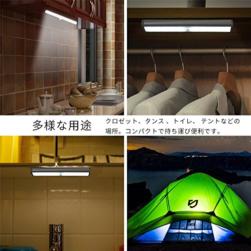 MECCION LEDセンサーライト 10個 高輝度と省エネ ワイヤレス たんす用 人感センサー led ライト 冷蔵庫にも適応 自動点灯消灯 充電式 (昼光色)