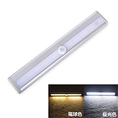 MECCION LEDセンサーライト 10個 高輝度と省エネ ワイヤレス たんす用 人感センサー led ライト 冷蔵庫にも適応 自動点灯消灯 充電式 (電球色)