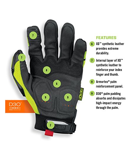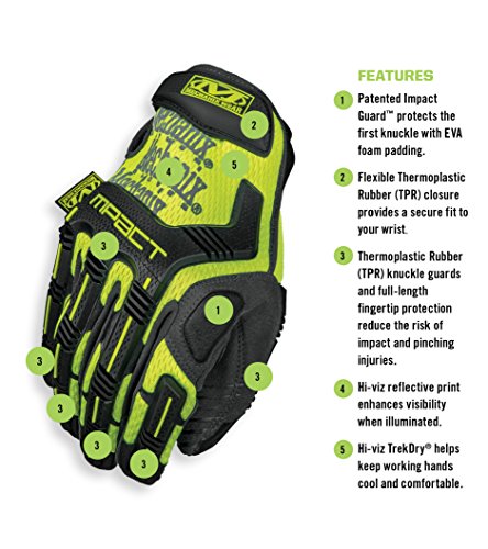 ●視認性の高い素材と反射インクを使用したグローブです●手の甲のサーモプラスチックラバー(TPR)のナックルガードが衝撃や摩擦から手を守ります●手のひらパッド部分のXRD[[(R)]]素材が、電動工具からの衝撃や振動を緩和します●親指と人差し指の指先にエンボス加工が施されており、高いグリップ力を実現しています●手の甲に通気性が高く手にフィットするTrekDry[[(R)]]素材を使用しており、快適な着け心地です●手首のクロージャー部分に柔軟性の高いサーモプラスチックラバー(TPR)を採用しており、手首にしっかりフィットします●洗濯機で洗うことができます●製造現場、建設現場、メンテナンス、修理など●サイズ:M●手のひら周り(cm):23.0●色:蛍光イエロー●全長(cm):21.5●中指長さ(cm):8.8●ANSI-107適応品●EN388規格:耐摩耗レベル3、耐切創レベル1、耐引裂レベル2、耐突刺レベル1●袖口:マジック式●人工皮革