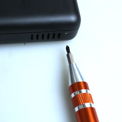 ・メタルカラーのペン型ホルダーに、8種類のドライバーヘッドが収納されています。