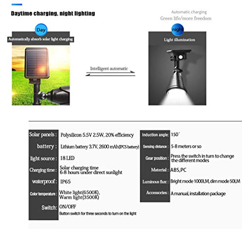ソーラーライト、屋外 18 LED スポットライト 1000LM PIR モーションセンサーガーデンヤードパスホワイトライト