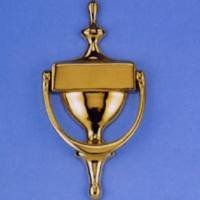 MINTCRAFT HR4004PB DOOR KNOCKER 7" SOLID BRASS. For door thickness less than 1-3/4". Size: 7"L. Includes screws. Approximately 6-5/16" center-to-center hole spacing.