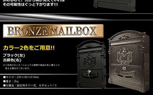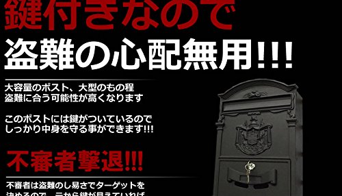 MIRACLE 【 アンティーク風 】 デザイン ポスト 壁取付 ヨーロッパ 盗難防止 鍵付き 大容量 セキュリティ (ブラック) MC-BZBOX-BK