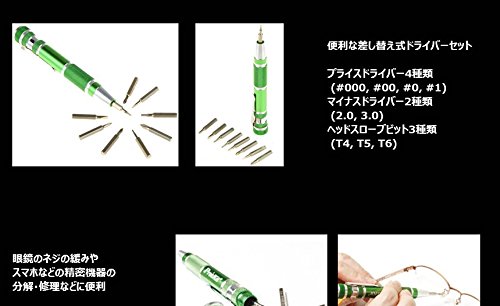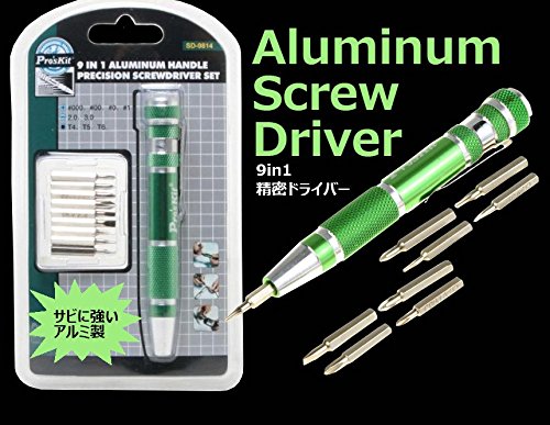 MIRACLE 9in1 アルミニウム 精密 ドライバー プラス マイナス + - 眼鏡 ヘッドスローブ ビット 9種類 サビ 防止 MC-SD-9814