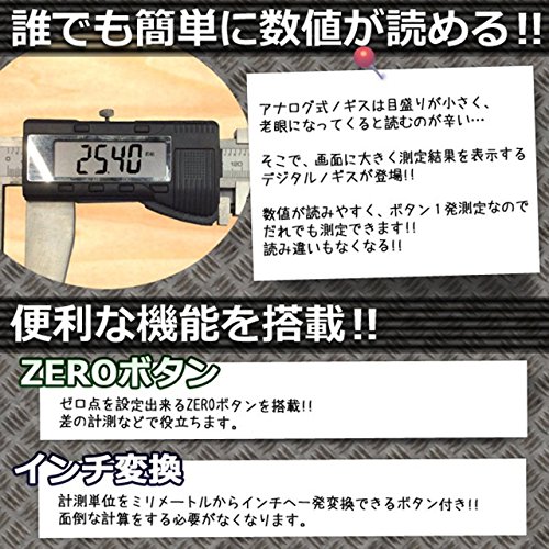 計測単位をミリメートルからインチへ一発変換できるボタン付き!! - ゼロ点を設定出来るZEROボタンを搭載!!