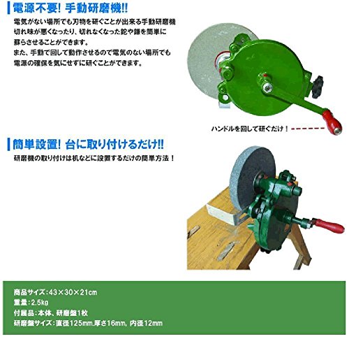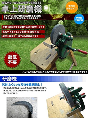 電気がない場所でも刃物を研ぐことが出来る手動研磨機