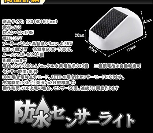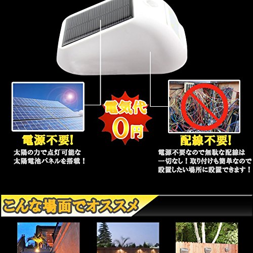 - 昼にソーラーパネルで充電して夜になると人の気配を感じて自動点灯!