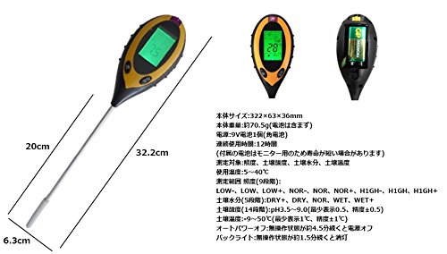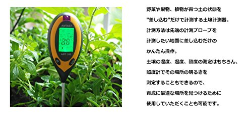 土壌の湿度、温度、酸度の測定はもちろん、
