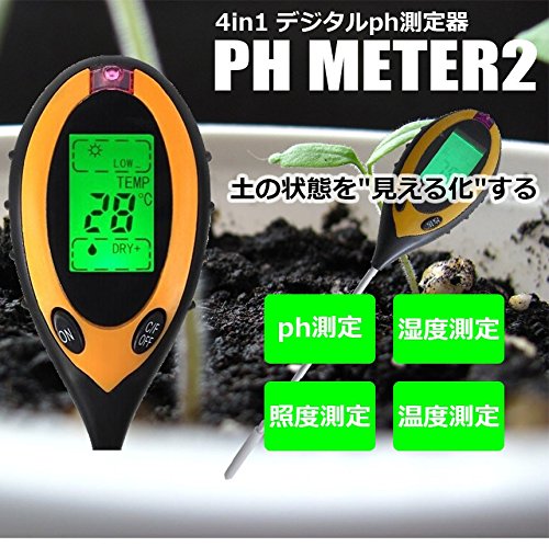 MIRACLE デジタル バックライト 土壌 ph 酸度 湿度 温度 照度 計測 測定 土 ガーデニング 家庭菜園 栽培 光 MC-PHMETA02