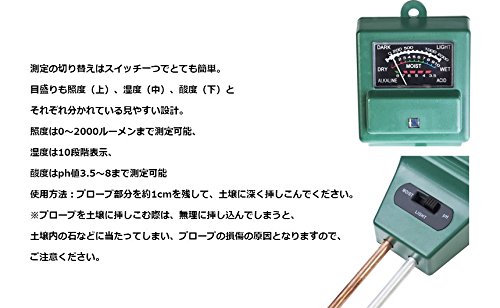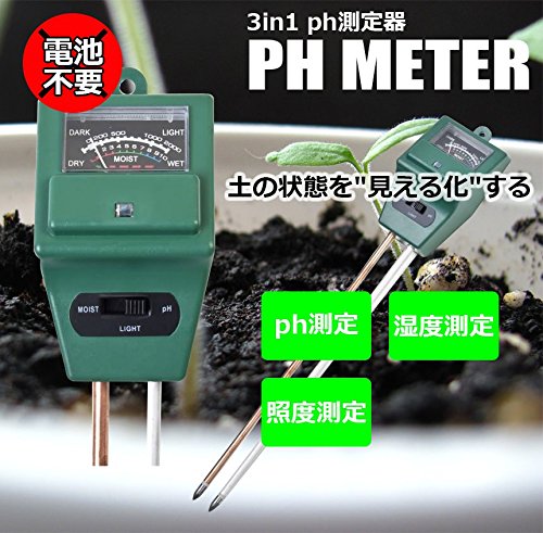 MIRACLE 土壌 ph 酸度 湿度 照度 計測 土 ガーデニング 家庭菜園 栽培 光 電池不要 MC-PHMETA01
