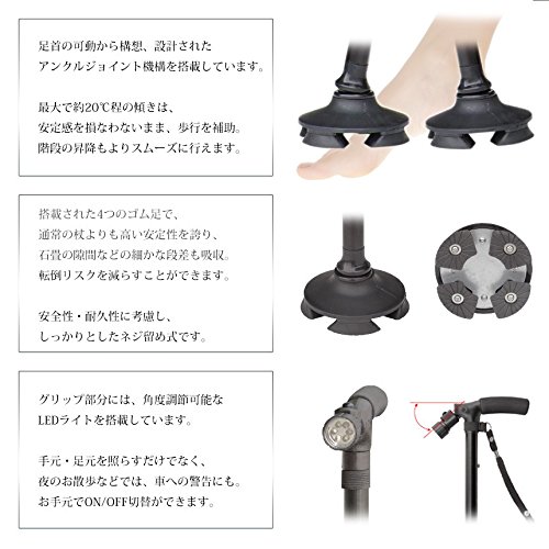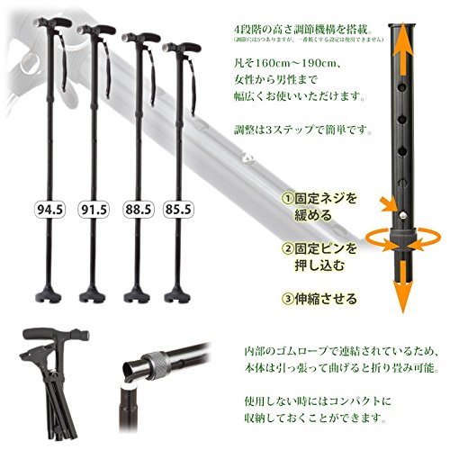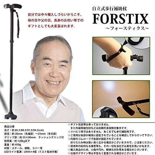 MIRAIS LEDライト付 自立する杖 魔法の杖 ステッキ 高さ調整 歩行補助杖 四点 折りたたみ 介護 高齢者 セーフティ MR-FORSTIX