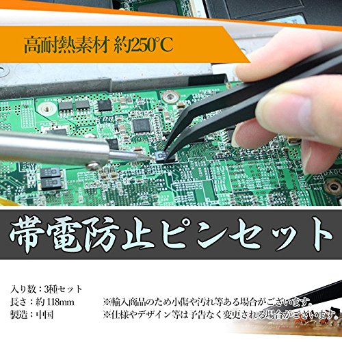 MIRAIS 【 帯電防止 】 ピンセット 3本セット 静電気防止 電子工作 精密 高耐熱素材 機械 基盤 DIY MR-MR-JM-T11