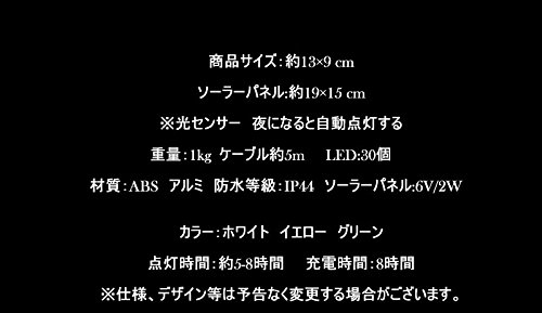 材質:ABS アルミ 防水等級:IP44 ソーラーパネル:6V/2W
