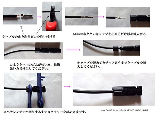 - ソーラーパネルとパワーコンディショナーやチャージコントローラー等の接続の際にケーブルに取り付け加工して使用します。