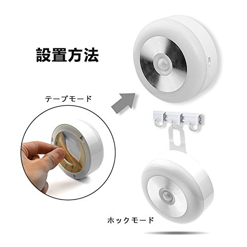 MIYOLE ナイトライト 人感センサーライト 省エネ 3Mテープ ホック付き 2個セット 落ちにくい キチン・クロゼット・玄関 自動点灯 消灯 夜間ライト 乾電池式