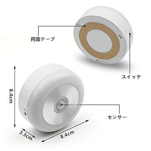 - 柔らかい光 色温度6000K 暗い所や夜間など、人体動きを感知し、自動点灯します。人体動きを感知しないと、約15秒自動消灯します、非常に便利です。昼間と光量が充分の場合は自動点灯になりません。感知範囲は約2メートルです。