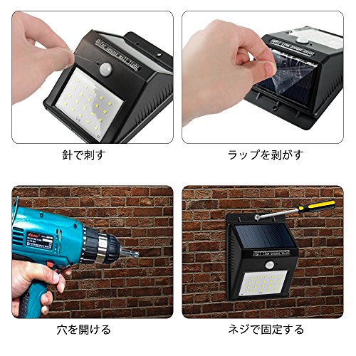 - 明暗と人感センサー:人感センサーライトは感知領域に出入りすることにより、自動的に点灯や消灯することできます。3メートル以内に動態を感知した時、光が点灯します。感知範囲外に移動すると光が約15秒後に消えます、昼間と光量が充分の場合は自動点灯になりません。省エネ、環境にも優しいです。