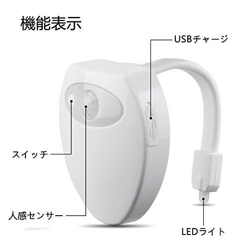 MIYOLE LEDトイレライト 便器ナイトライト 便座LEDランプ お手洗い USB充電式 防水機能付き べんき飾りライト 人感センサーライト ボタン付き ToiletLight 8色変換可