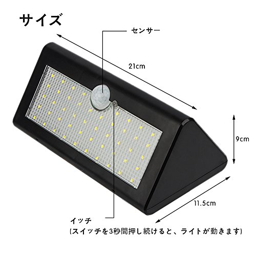 - 明暗と人感センサー:人感センサーライトは感知領域に出入りすることにより、自動的に点灯や消灯することできます。3メートル以内に動態を感知した時、光が点灯します。感知範囲外に移動すると光が約30秒後に消えます、昼間と光量が充分の場合は自動点灯になりません。省エネ、環境にも優しいです。
