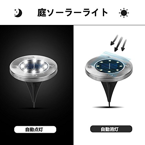MIYOLE LEDソーラーガーデンライト 埋め込み式 グラウンドライト 屋外照明 エクステリアライト 防水 PLAZA、ガーデン、庭、芝生、公園に適うアウトドア用ライト ホワイト 4個セット 8LED電球
