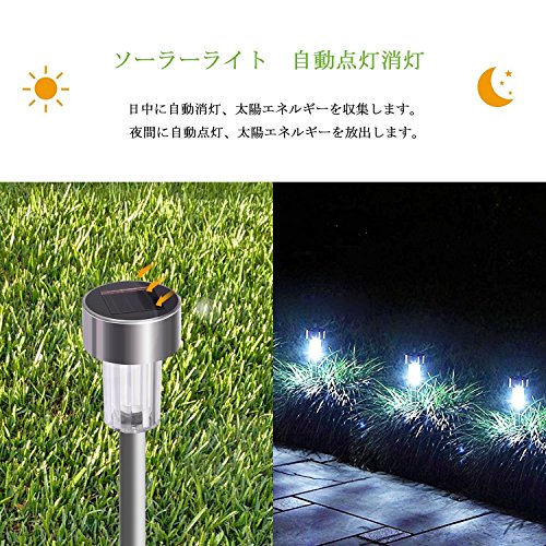 LEDガーデンライト MIYOLE 屋外 ソーラーライト 省エネ パスライト ステンレス製 12本セット 芝生ランプ 埋め込み式 防水 庭 玄関 車道 歩道 園芸 照明(ホワイト)