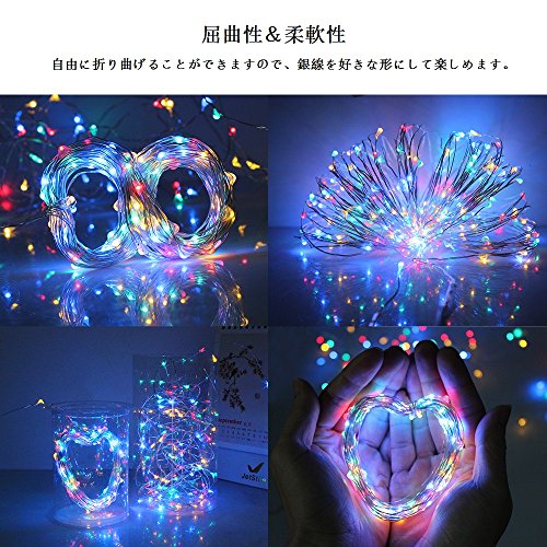 - ★【柔軟性】全体の長さは10メートルであり、100電球を持っています。銀線を採用されて、自由に好きな形を手作ります、例えば、心形を作り、心の彼女に告白します。学園祭、庭園の植物、クリスマスツリー、工芸品、家具などの装飾に最適です。