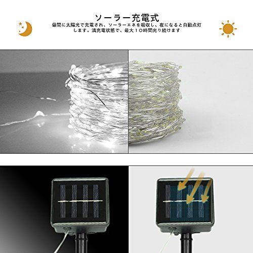 - ★【省エネー・防水】ソーラー式で電気代は一切不要です。日当たりの一番良い場所に設置するだけです。パネルも銀線ライトも防水加工をされており、悪天候でもご心配なくご使用いただけます。