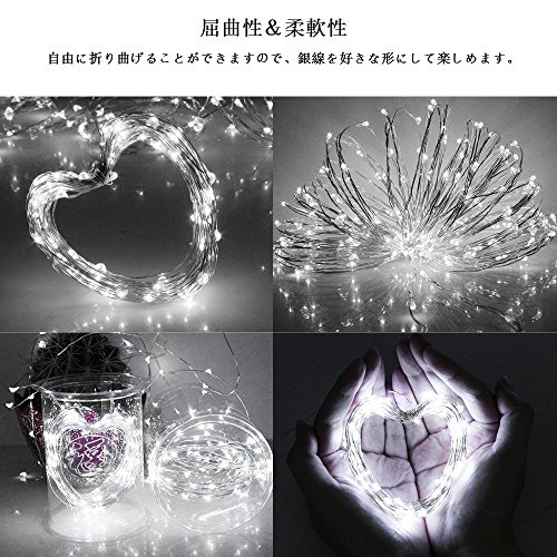 - ★【柔軟性】全体の長さは10メートルであり、100電球を持っています。銀線を採用されて、自由に好きな形を手作ります、例えば、心形を作り、心の彼女に告白します。学園祭、庭園の植物、クリスマスツリー、工芸品、家具などの装飾に最適です。