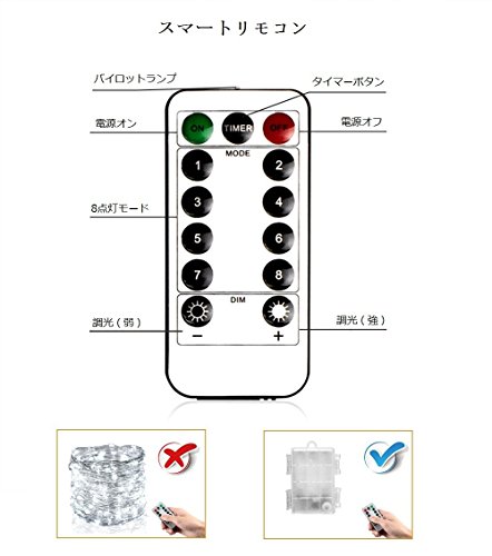- ☆【8種類の点灯モード】イルミネーションライト 電池式は8種類の点灯モードを持って、気分と環境によって、ご好きな照明モードが選択できます。色んなアレンジが楽しめ、雰囲気作りに大活躍! 生活を照らして、ご好きな雰囲気を差し上げます。